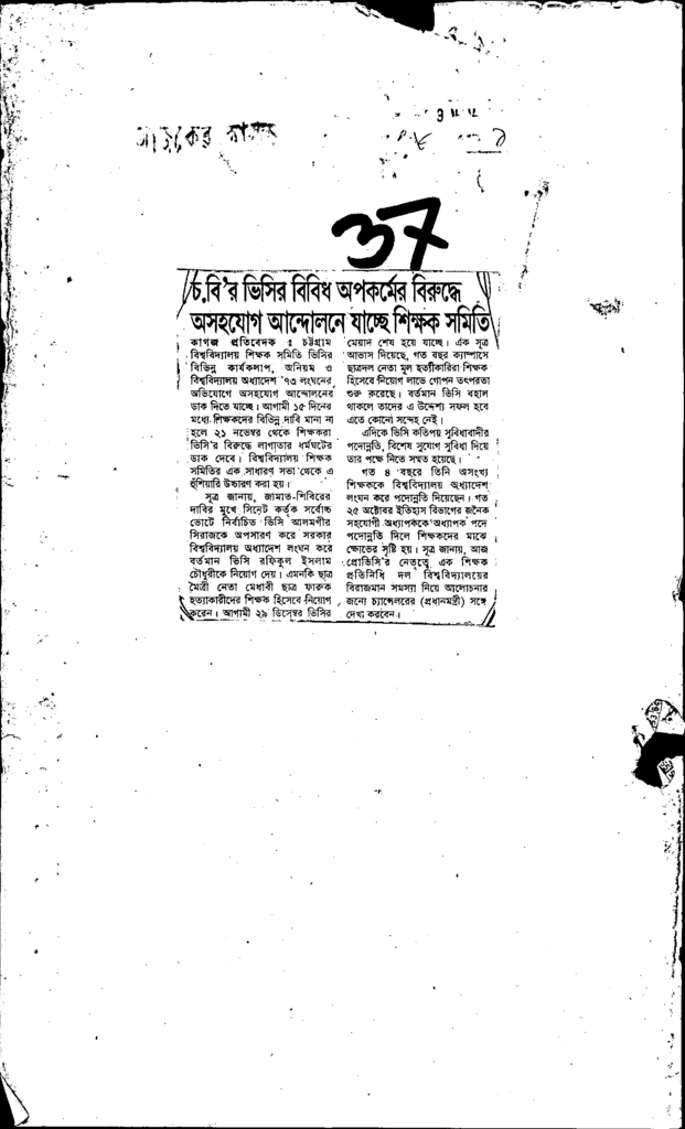 চ.বি’র ভিসির বিবিধ অপকর্মের বিরুদ্বে অসহযোগ আন্দোলনে যাচ্ছে শিক্ষক সমিতি