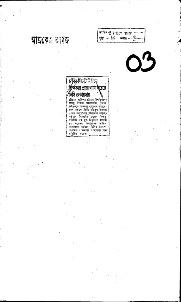 চ’বির সিনেট নির্বাচন শিক্ষকরা প্রত্যাখ্যান করেছে ভিসি বেকায়দায় Published on Newspaper দৈনিক আজকের কাগজ Category General Education General Education Higher Education Public Download