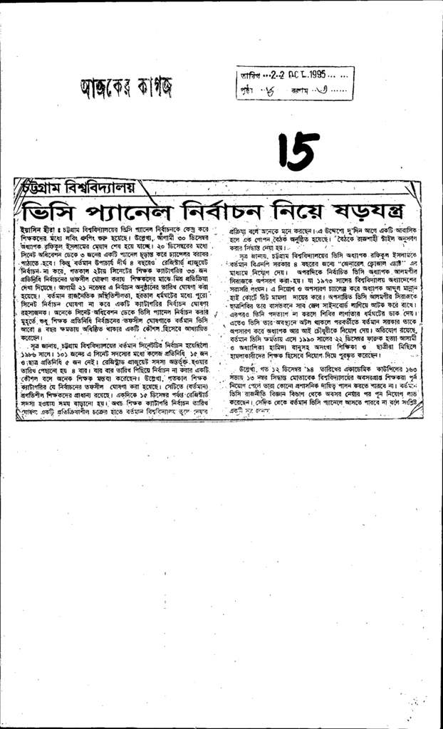 ভিসি প্যানেল নির্বাচন নিয়ে ষড়যন্ত্র Published on Newspaper দৈনিক আজকের কাগজ Category General Education General Education Higher Education Public Download