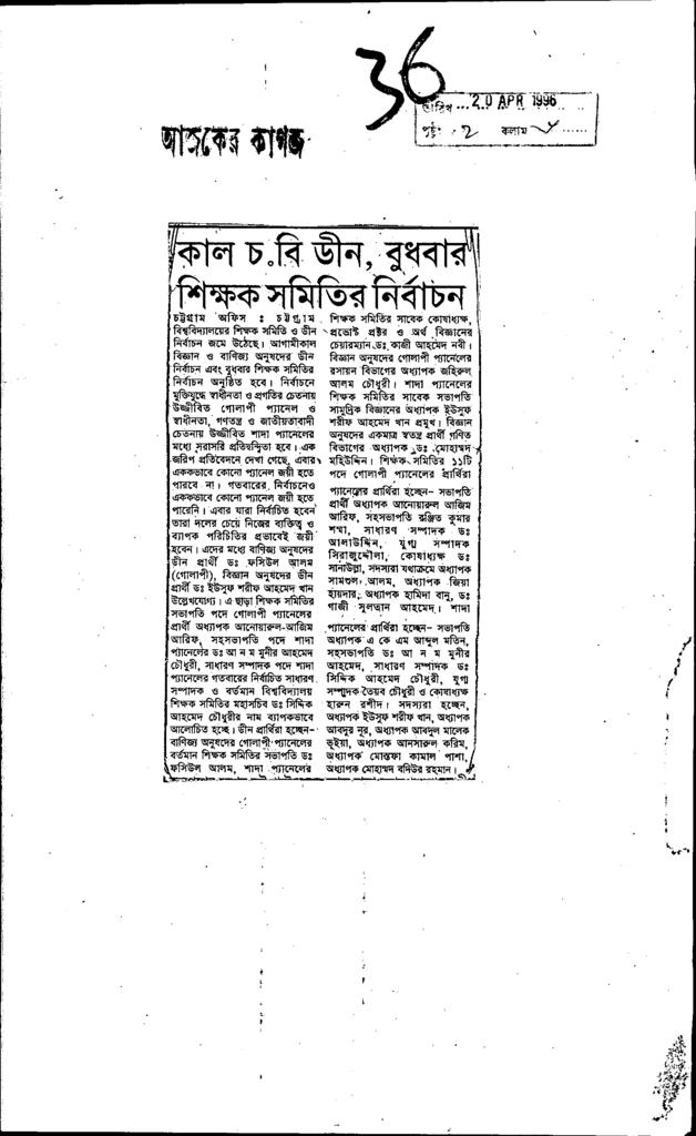 কাল চ.বি ডীন, বুধবার শিক্ষক সমিতির নির্বাচন Published on Newspaper দৈনিক আজকের কাগজ Category General Education General Education Higher Education Public Download