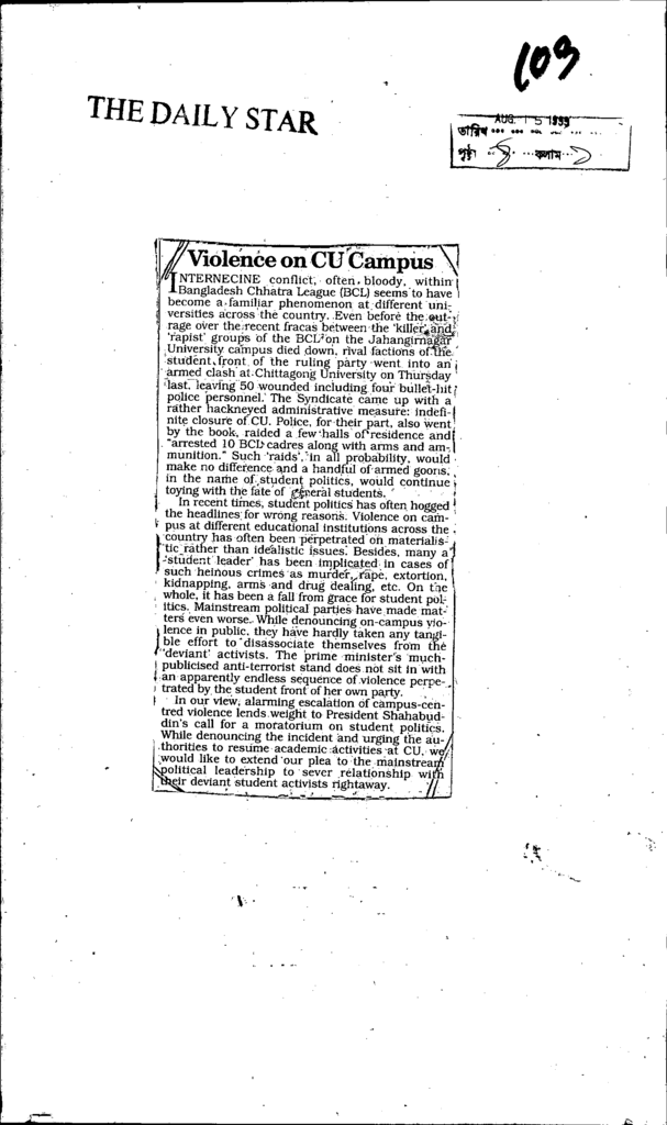 Violence on cu campus Published on Newspaper The Daily Star Category General Education General Education Higher Education Public Download
