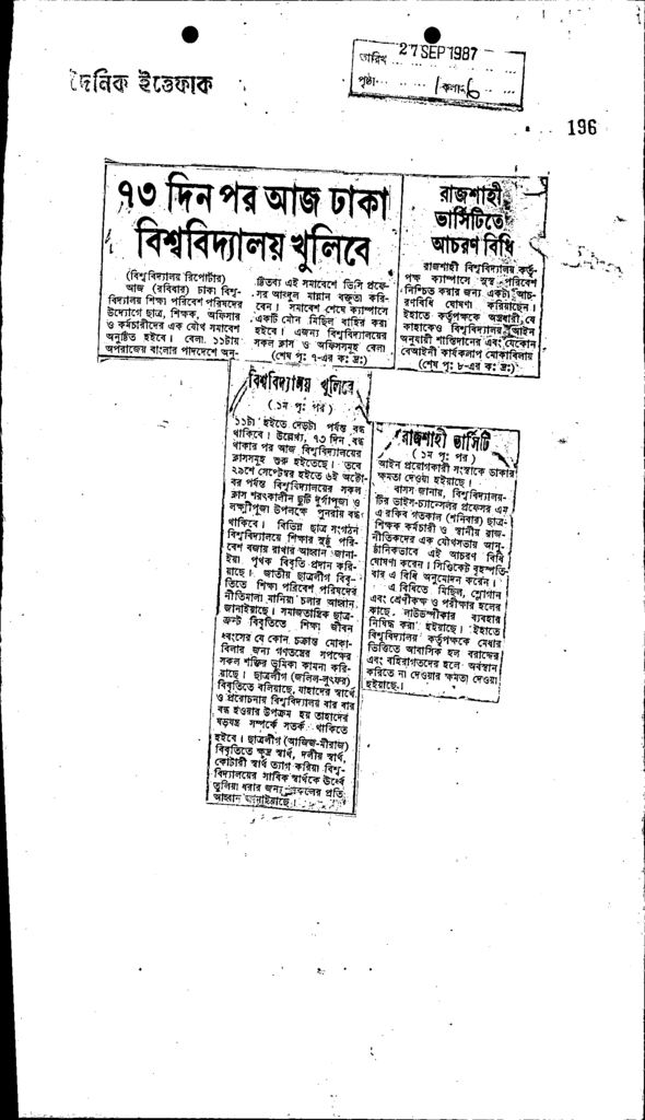 73 দিন পর আজ ঢাকা বিশ্ববিদ্যালয় খুলিবে Published on Newspaper দৈনিক ইত্তেফাক Category General Education General Education Higher Education Public Download