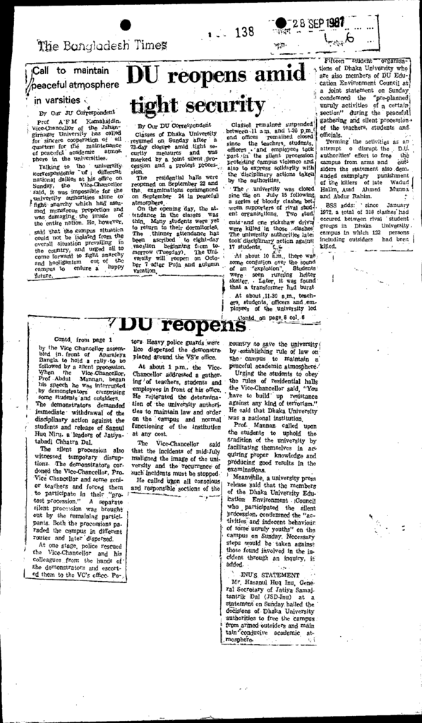 Du reopens amid tight security Published on Newspaper The Bangladesh Times Category General Education General Education Higher Education Public Download
