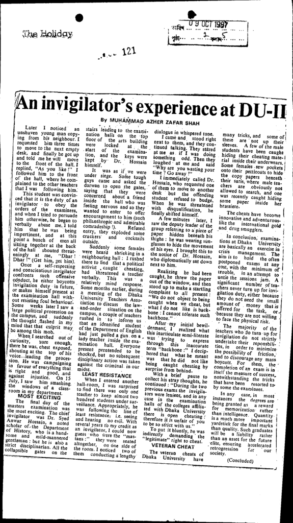 An invigilator's experience at du-ii Published on Newspaper The Holiday Category General Education General Education Higher Education Public Download