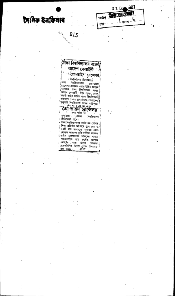 ঢাকা বিশ্ববিদ্যালয় বন্ধের আদেশ বেআিইনী - প্রো-ভাইস চ্যান্সেলর Published on Newspaper দৈনিক ইনকিলাব Category General Education General Education Higher Education Public Download