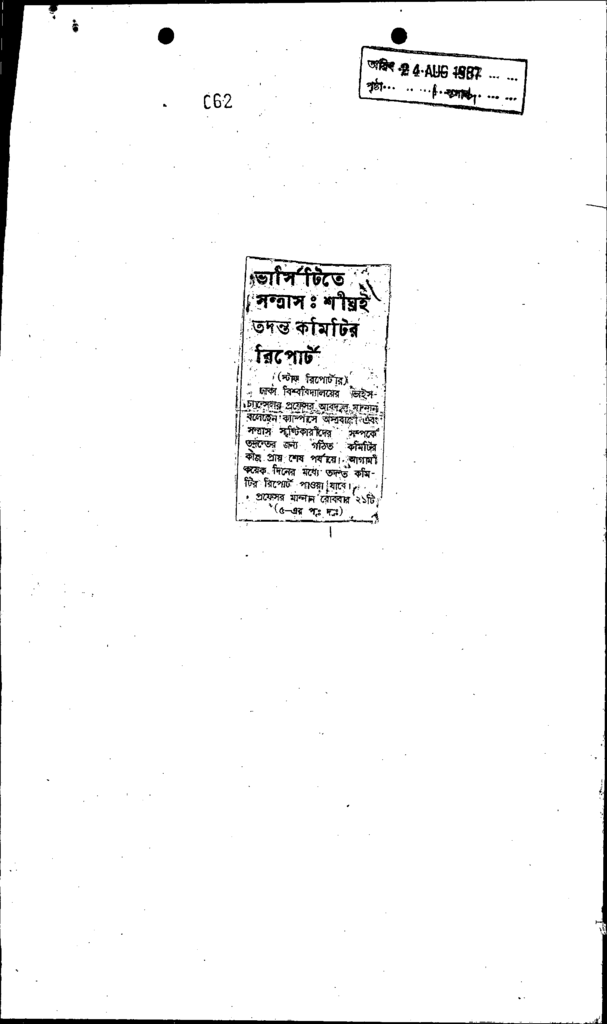 ঢাকা ভার্সিটিতে সন্ত্রাস: শীগ্রই তদন্ত কমিটির রিপোর্ট Published on Newspaper দৈনিক সংবাদ Category General Education General Education Higher Education Public Download