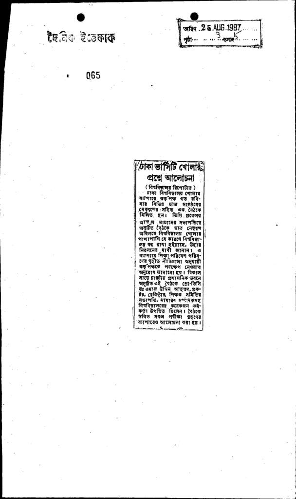ভার্সিটি Published on Newspaper দৈনিক ইত্তেফাক Category General Education General Education Higher Education Public Download