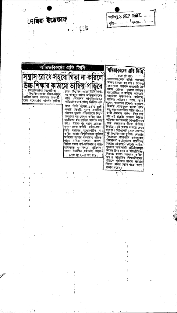 সন্ত্রাস রোধে সহযোগিতা না করিলে উচ্চ শিক্ষার কাঠামো ভাঙ্গিয়া পড়িবে Published on Newspaper দৈনিক ইত্তেফাক Category General Education General Education Higher Education Public Download