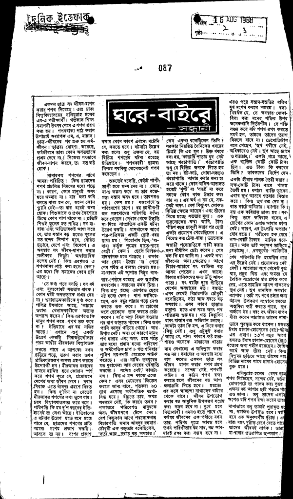 ঘরে-বাইরে- সন্ধানী Published on Newspaper দৈনিক ইত্তেফাক Category General Education General Education Higher Education Public Download
