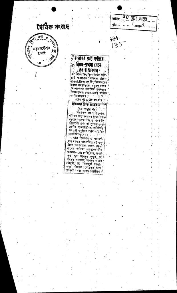 ছাত্রদের প্রতি সর্বস্তরে নিয়ম-শৃঙ্খলা মেনে চলার আহবান Published on Newspaper দৈনিক সংবাদ Category General Education General Education Higher Education Public Download