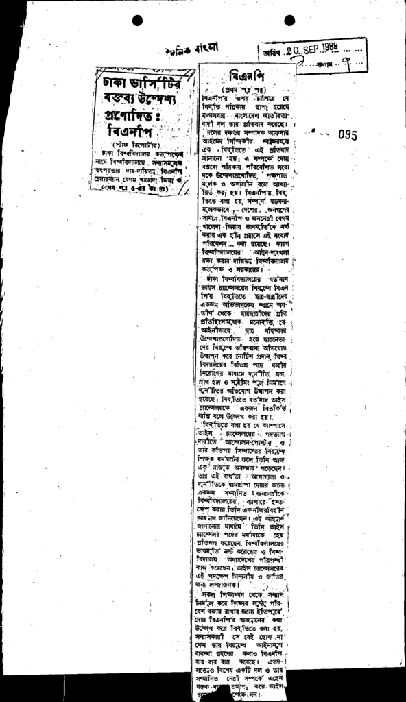 ঢাকা ভার্সিটির বক্তব্য উদ্দেশ্য প্রণোদিতঃ বিএনপি Published on Newspaper দৈনিক বাংলা Category General Education General Education Higher Education Public Download