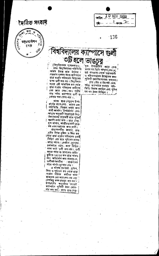 বিশ্ববিদ্যালয় ক্যাম্পাসে গলী 3টি হলে ভংঙচুর Published on Newspaper দৈনিক সংবাদ Category General Education General Education Higher Education Public Download