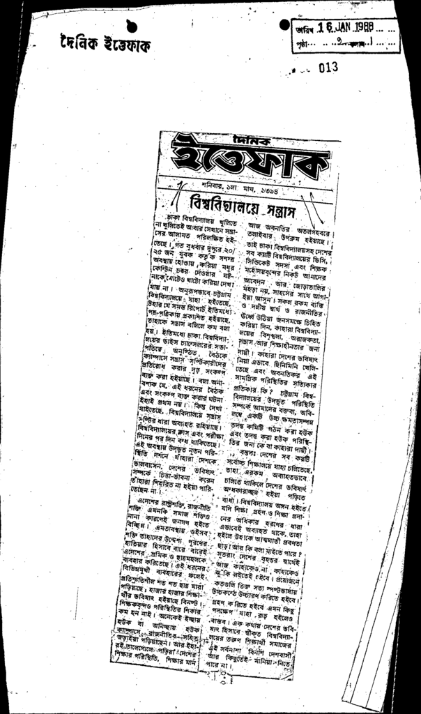 বিশ্ববিদ্যালয়ে সন্ত্রাস Published on Newspaper দৈনিক ইত্তেফাক Category General Education General Education Higher Education Public Download