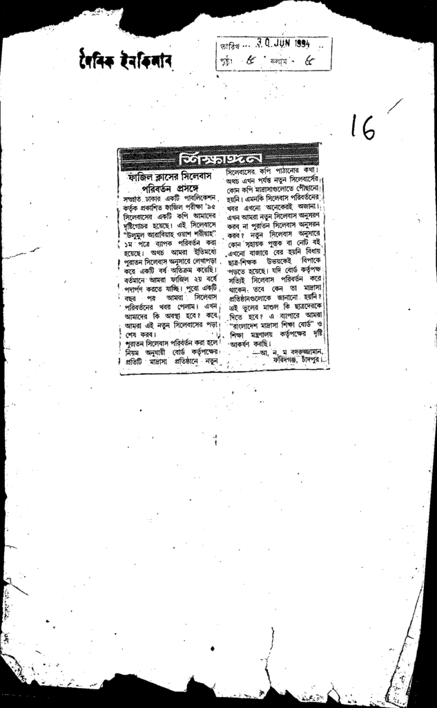 ফাজির ক্লাসের সিলেবাস পরিবর্তন প্রসঙ্গে
