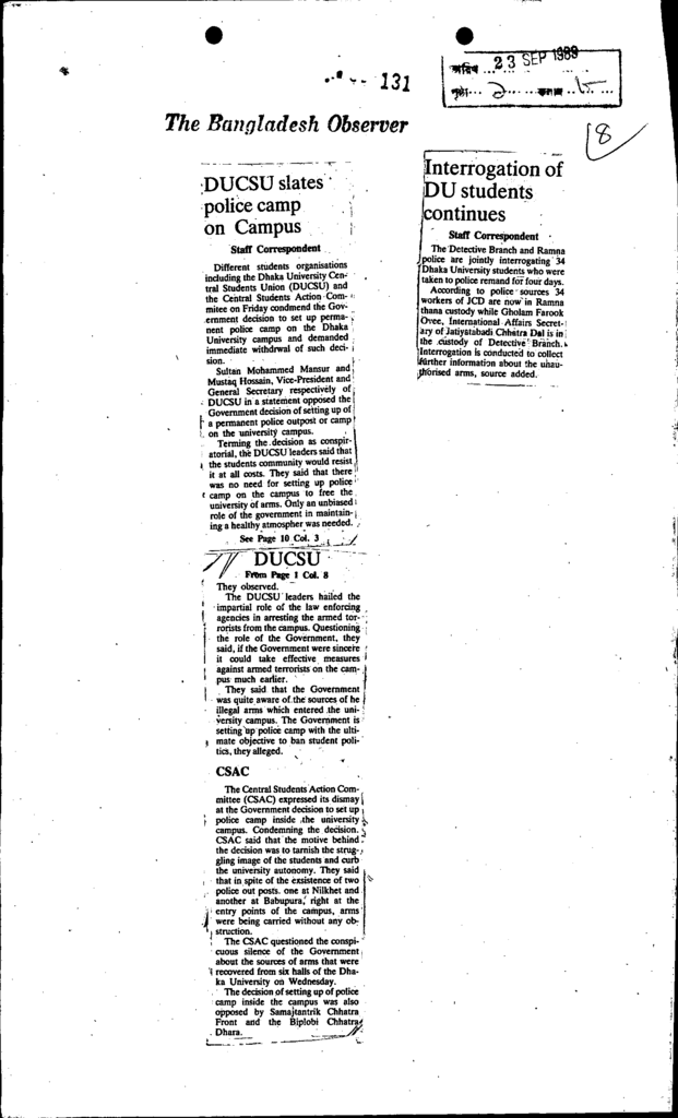 Ducsu slates police camp on campus Published on Newspaper The Bangladesh Observer Category General Education General Education Higher Education Public Download