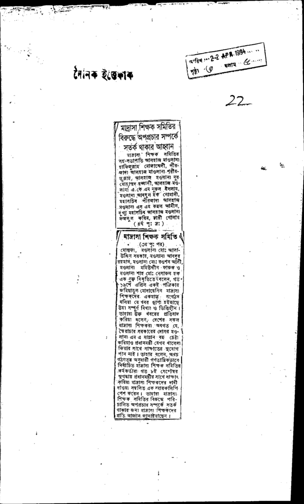 মাদ্রাসা শিক্ষক সমিতির বিরুদ্ধেঅপপ্রচার সম্পর্কে সতর্ক থাকর আহ্বান Published on Newspaper দৈনিক ইত্তেফাক Category Madrasah Education Madrasah Education Alia Download