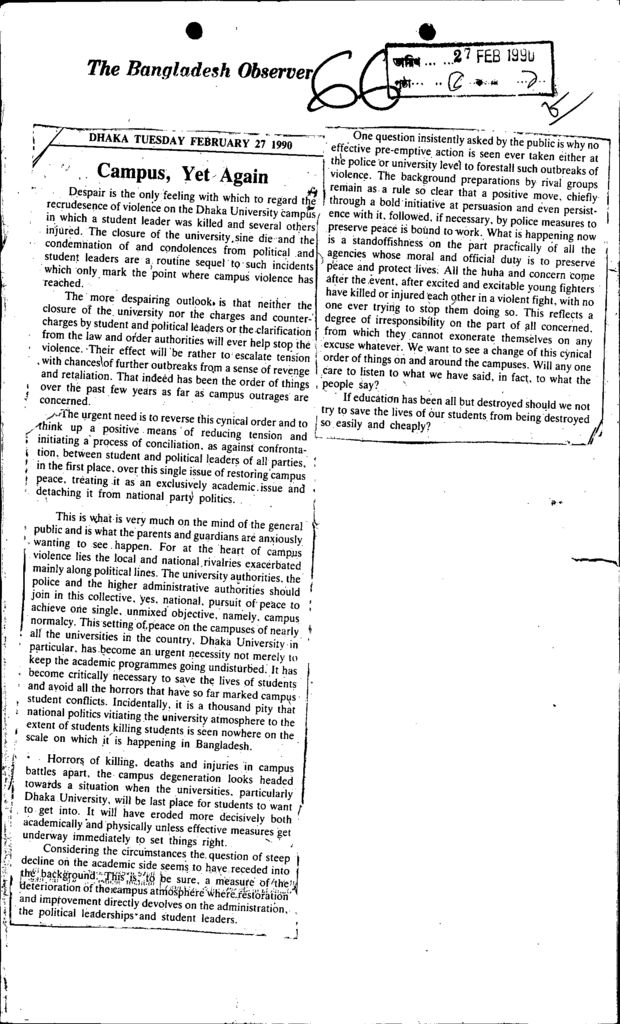 Campus, yet again Published on Newspaper The Bangladesh Observer Category General Education General Education Higher Education Public Download
