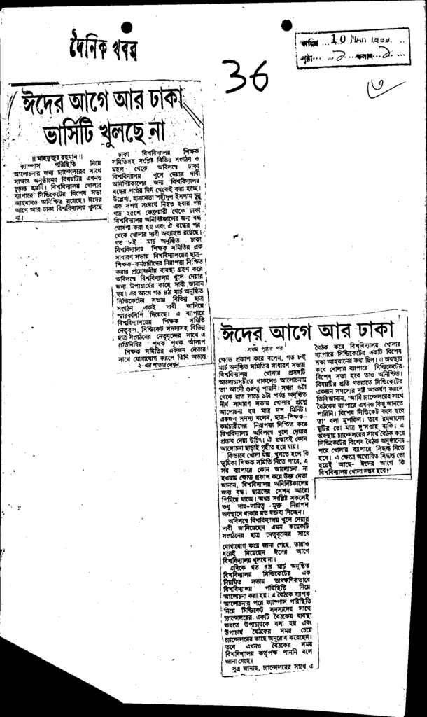 ঈদের আগে আর ঢাকা ভার্সিটি খুলছে না