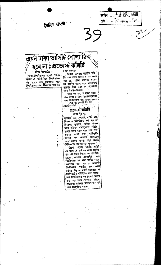 এখন ঢাকা ভার্সিটি খোলা ঠিক হবে নাঃ প্রভোস্ট কমিটি Published on Newspaper দৈনিক বাংলা Category General Education General Education Higher Education Public Download