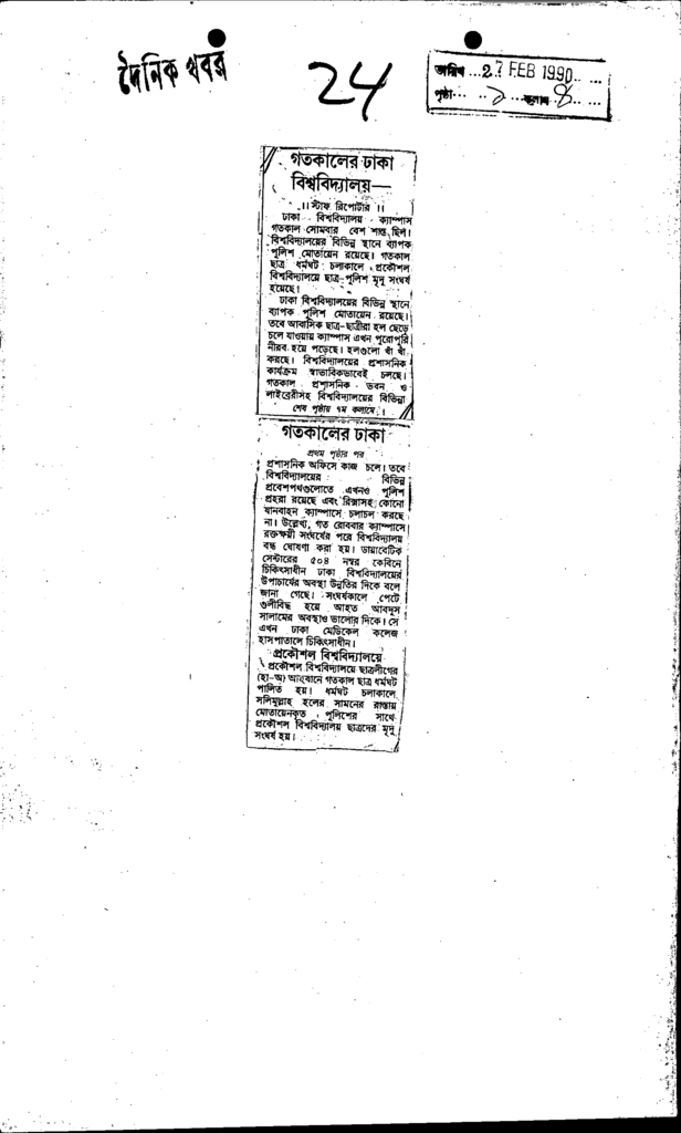 গতকালের ঢাকা বিশ্ববিদ্যালয়