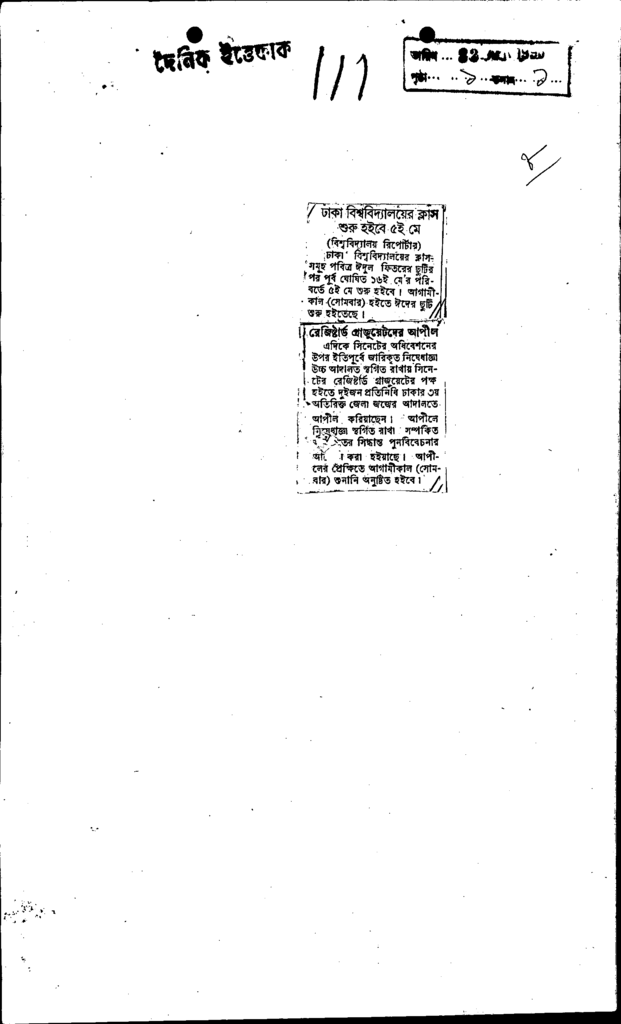 ঢাকা বিশ্ববিদ্যালয়ের ক্লাস শুরু হইবে 5ই মে Published on Newspaper দৈনিক ইত্তেফাক Category General Education General Education Higher Education Public Download