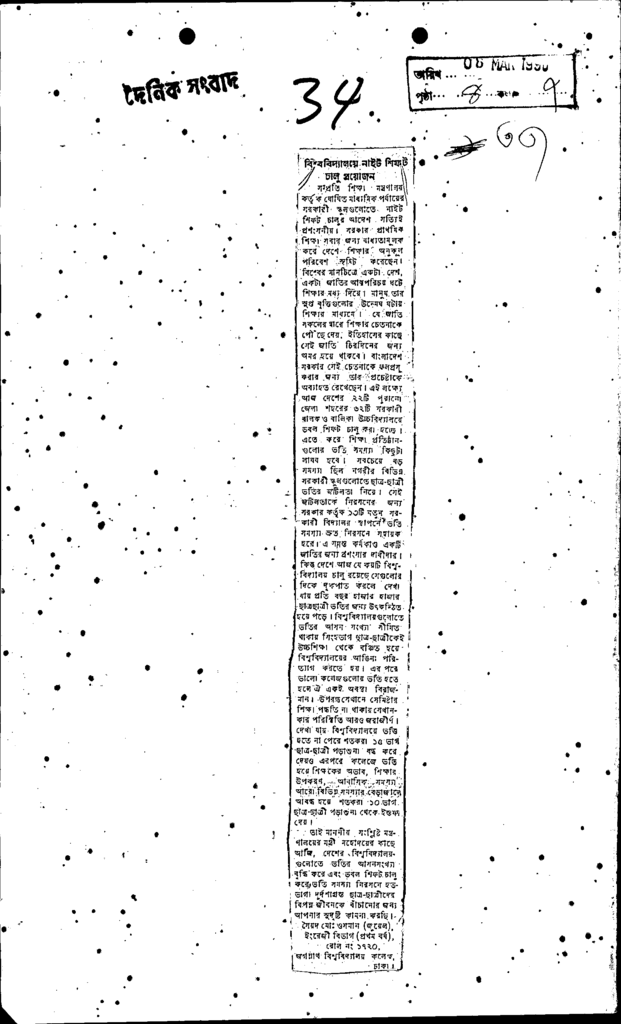 বিশ্ববিদ্যালয়ে নাইট শিফট চালু প্রয়োজন Published on Newspaper দৈনিক সংবাদ Category General Education General Education Higher Education Public Download