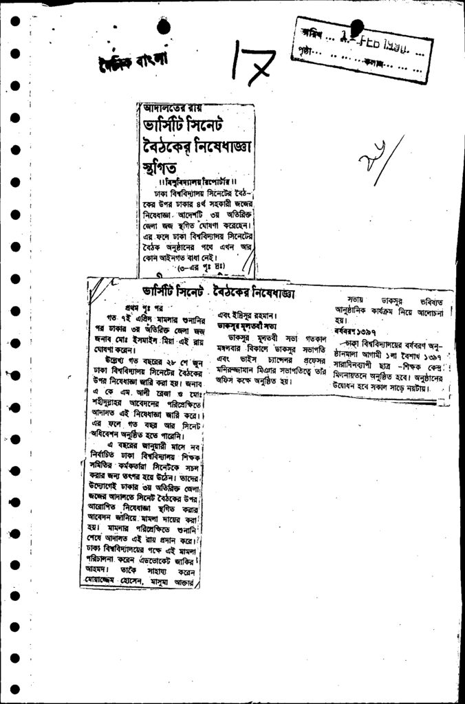 ভার্সিটি সিনেট বৈঠকের নিষেধাজ্ঞা স্থগিত Published on Newspaper দৈনিক বাংলা Category General Education General Education Higher Education Public Download