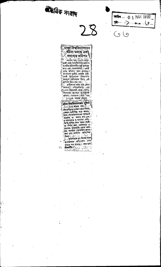 ঢাকা বিশ্ববিদ্যালয়ের ঘটনা তদন্তে এক সদস্যের কমিশন Published on Newspaper দৈনিক সংবাদ Category General Education General Education Higher Education Public Download