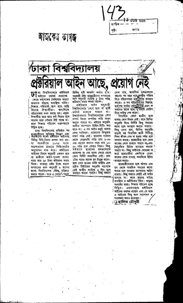 প্রক্টরিয়াল আইন আছে , প্রয়োগ নেই Published on Newspaper দৈনিক আজকের কাগজ Category General Education General Education Higher Education Public Download
