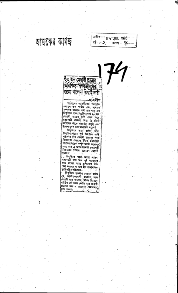 20 জন মেধাবী ছাত্রের অনিশ্চিত শিক্ষাজীবনের জন্যে খালেদা জিয়াই দায়ী Published on Newspaper দৈনিক আজকের কাগজ Category General Education General Education Higher Education Public Download