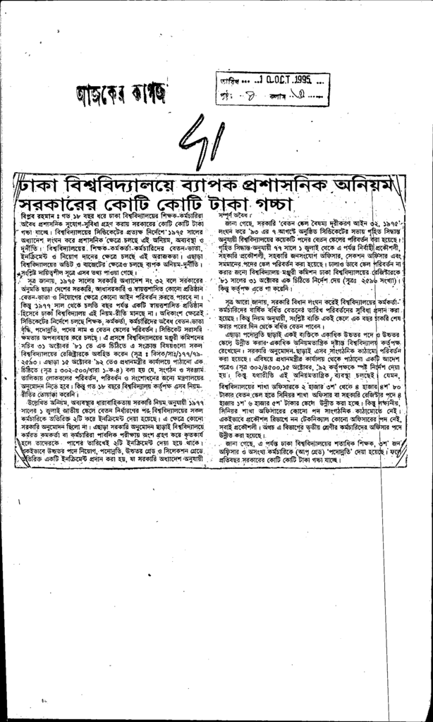 ঢাকা বিশ্ববিদ্যালয়ে ব্যাপক প্রশাসনিক অনিয়ম সরকারের কোটি কোটি টাকা গচ্চা Published on Newspaper দৈনিক আজকের কাগজ Category General Education General Education Higher Education Public Download