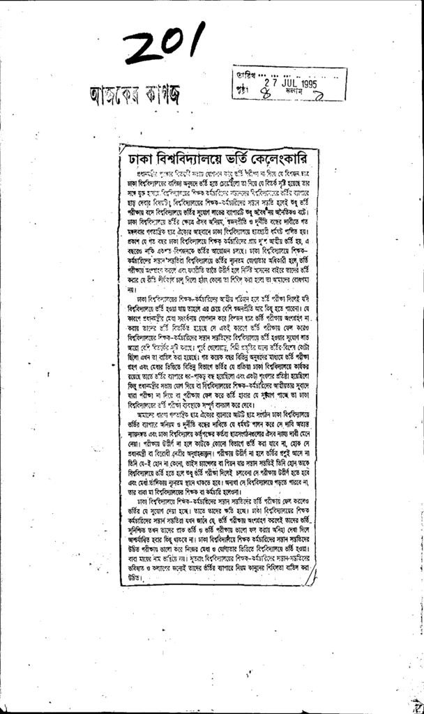 ঢাকা বিশ্ববিদ্যালয়ে ভর্তি কেলেংকারি