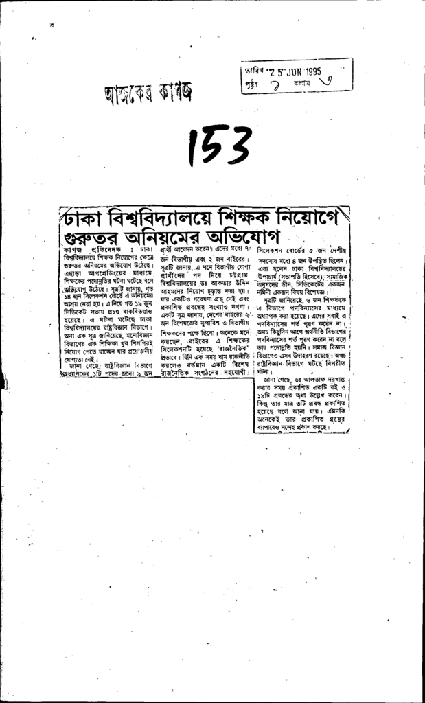 ঢাকা বিশ্ববিদ্যালয়ে শিক্ষক নিয়োগ গুরুতর অনিয়মের অভিযোগ Published on Newspaper দৈনিক আজকের কাগজ Category General Education General Education Higher Education Public Download
