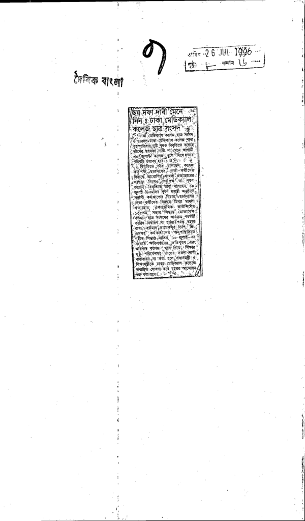 ছয় দফা দাবী মেনে নিনঃ ঢাকা মেডিক্যাল কলেজ ছাত্র সংসদ
