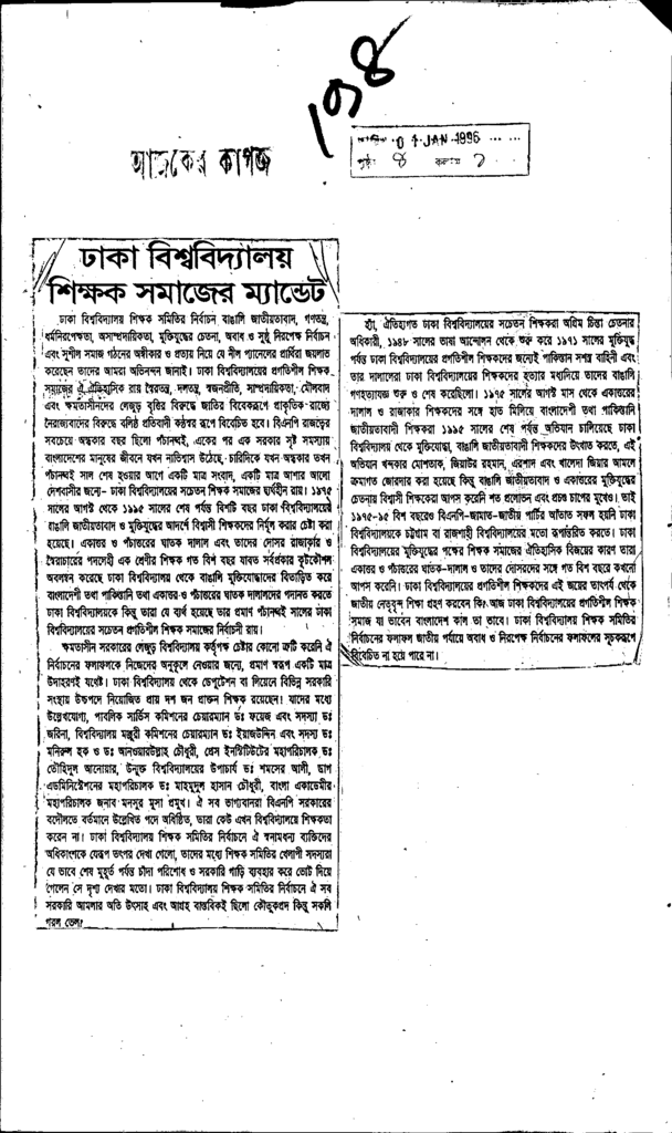 ঢাকা বিশ্ববিদ্যালয় শিক্ষক সমাজের ম্যান্ডেট Published on Newspaper দৈনিক আজকের কাগজ Category General Education General Education Higher Education Public Download