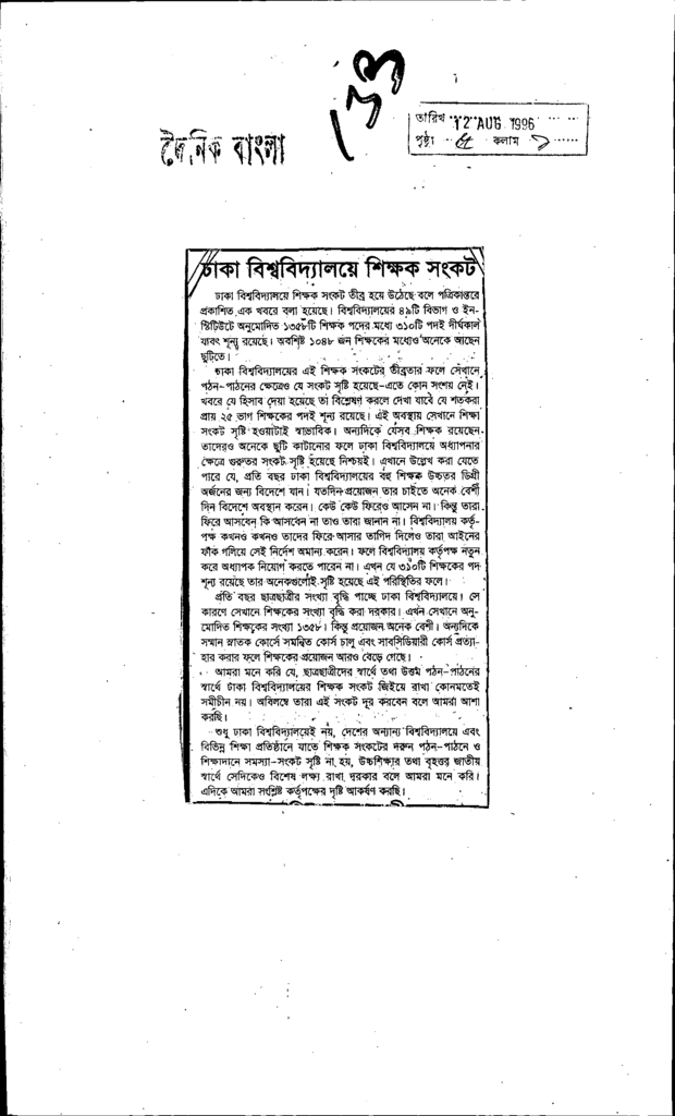 ঢাকা বিশ্ববিদ্যালয়ে শিক্ষক সংকট
