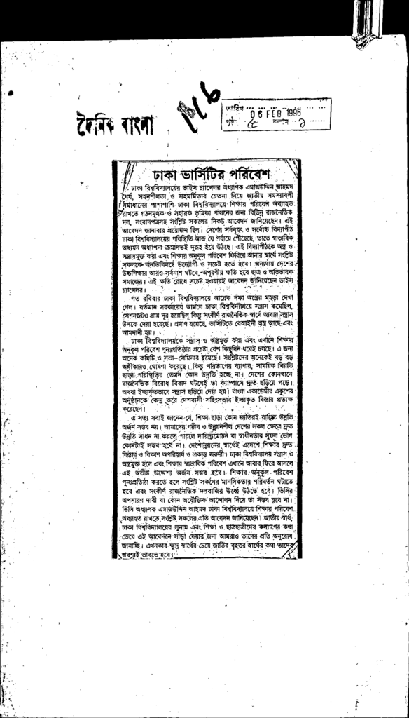 ঢাকা ভার্সিটির পরিবেশ