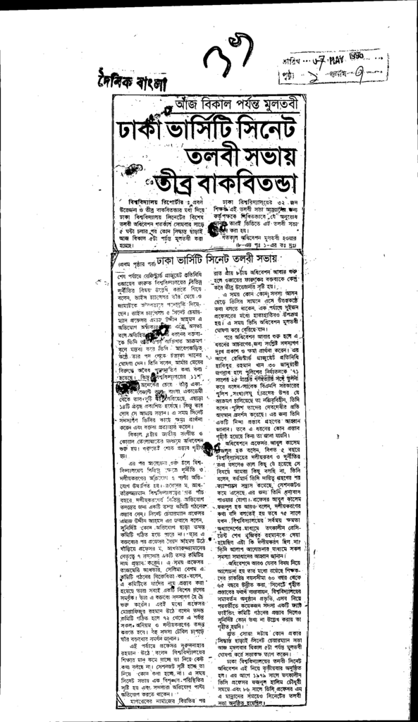 ঢাকা ভার্সিটি সিনেট তলবী সভায় তীব্র বাকবিতন্ডা Published on Newspaper দৈনিক বাংলা Category General Education General Education Higher Education Public Download
