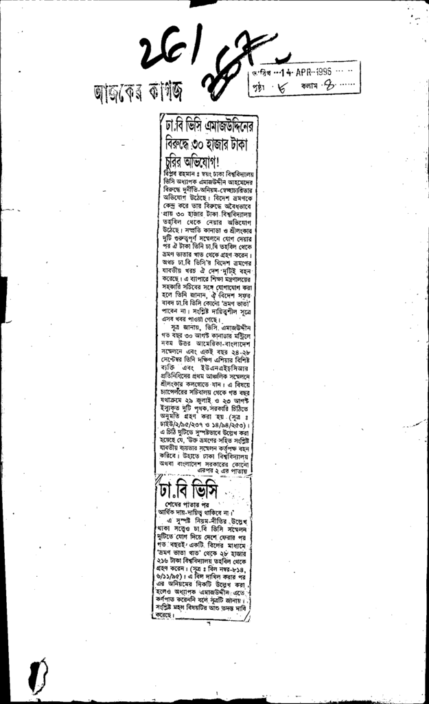 ঢা.বি ভিসি এমাজউদ্দিনের বিরুদ্ধে 30 হাজার টাকা চুরির অভিযোগ!