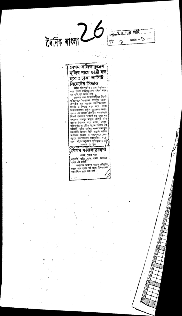 বেগম ফজিলাতুন্নেসা মুজিব নামে ছাত্রী হল হবেঃ ঢাকা ভার্সিটি সিনেটের সিদ্ধান্ত Published on Newspaper দৈনিক বাংলা Category General Education General Education Higher Education Public Download