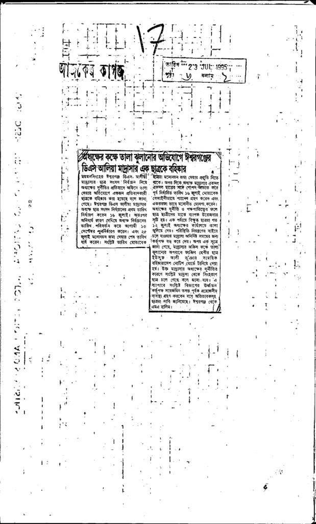 অধ্যক্ষের কক্ষে তালা ঝুলানোর অভিযোগে ঈশ্বরগঞ্জের ডিএস আলিয়া মাদ্রাসার এক ছাত্রকে বহিষ্কার Published on Newspaper দৈনিক আজকের কাগজ Category Madrasah Education Madrasah Education Alia Download