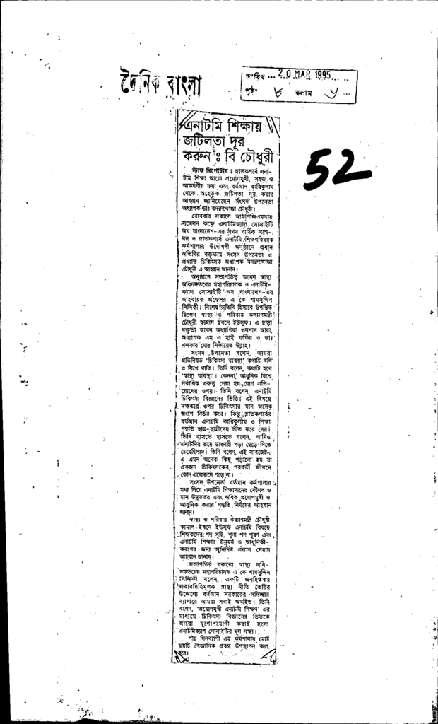 এনাটমি শিক্ষায় জটিলতা দূর করুনঃ বি চৌধুরী Published on Newspaper দৈনিক বাংলা Category Madrasah Education Madrasah Education Alia Download
