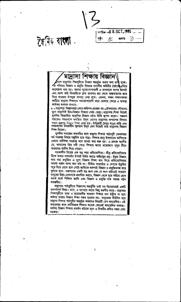 মাদ্রাসা শিক্ষায় বিজ্ঞান Published on Newspaper দৈনিক বাংলা Category Madrasah Education Madrasah Education Alia Download