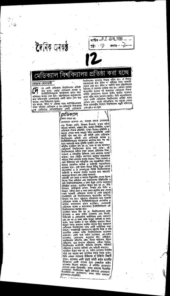 মেডিক্যার বিশ্ববিদ্যালয় প্রতিষ্ঠা করা হচ্ছে Published on Newspaper দৈনিক জনকণ্ঠ Category Madrasah Education Madrasah Education Alia Download