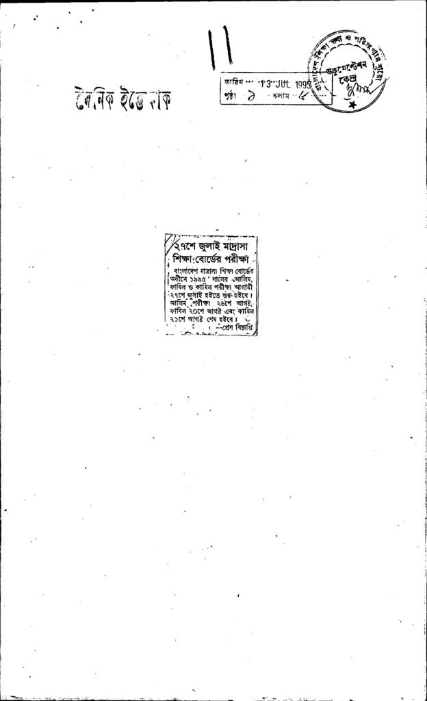 ২৭শে জুলাই মাদ্রাসা শিক্ষা বোর্ডের পরীক্ষা Published on Newspaper দৈনিক ইত্তেফাক Category Madrasah Education Madrasah Education Alia Download