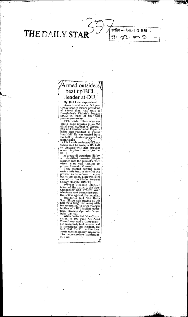 Armed outsiders beat up bcl leader at du Published on Newspaper The Daily Star Category General Education Higher Education Public Download