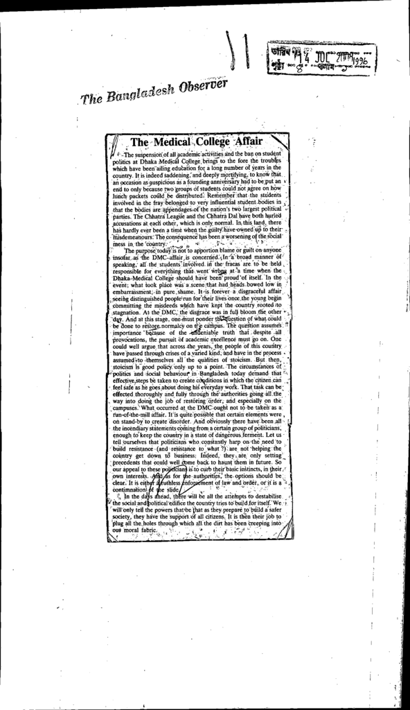The medical college affair Published on Newspaper The Bangladesh Observer Category Madrasah Education Madrasah Education Alia Download