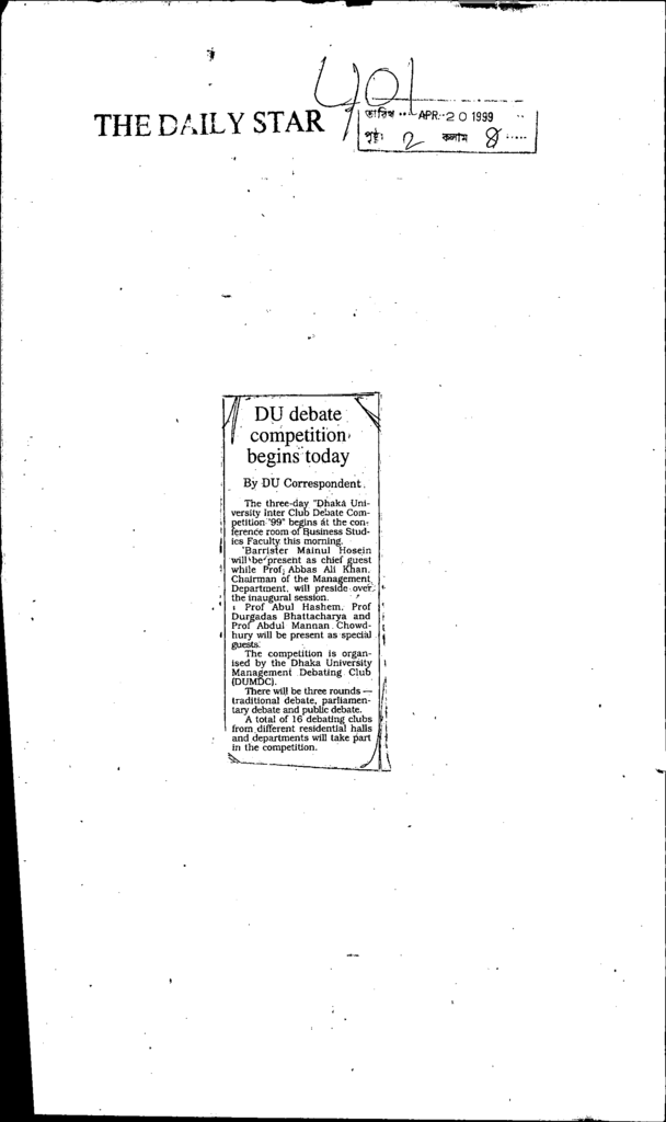 Du debate competition begins today Published on Newspaper The Daily Star Category General Education Higher Education Public Download
