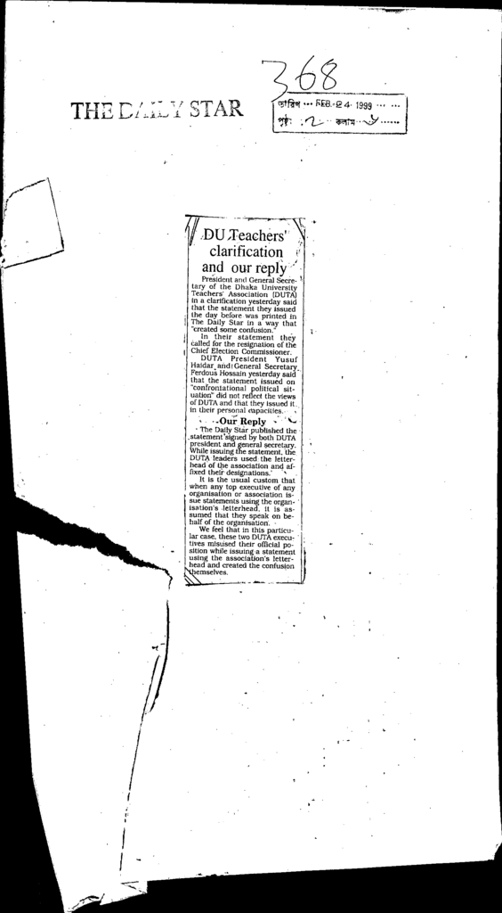 Du teachers clarification and our reply Published on Newspaper The Daily Star Category General Education Higher Education Public Download
