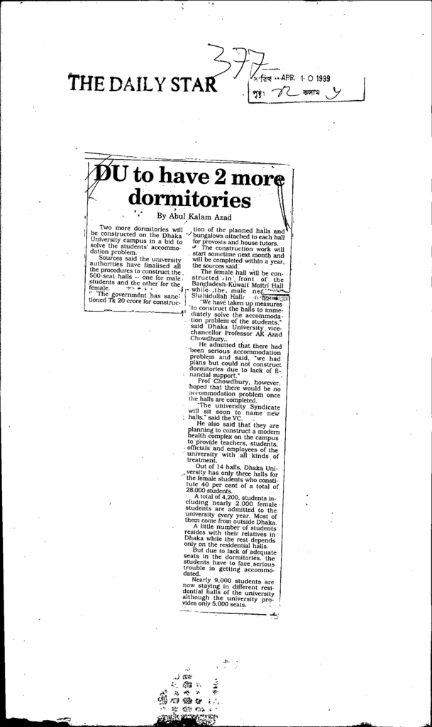 Du to have 2 more dormitories Published on Newspaper The Daily Star Category General Education Higher Education Public Download